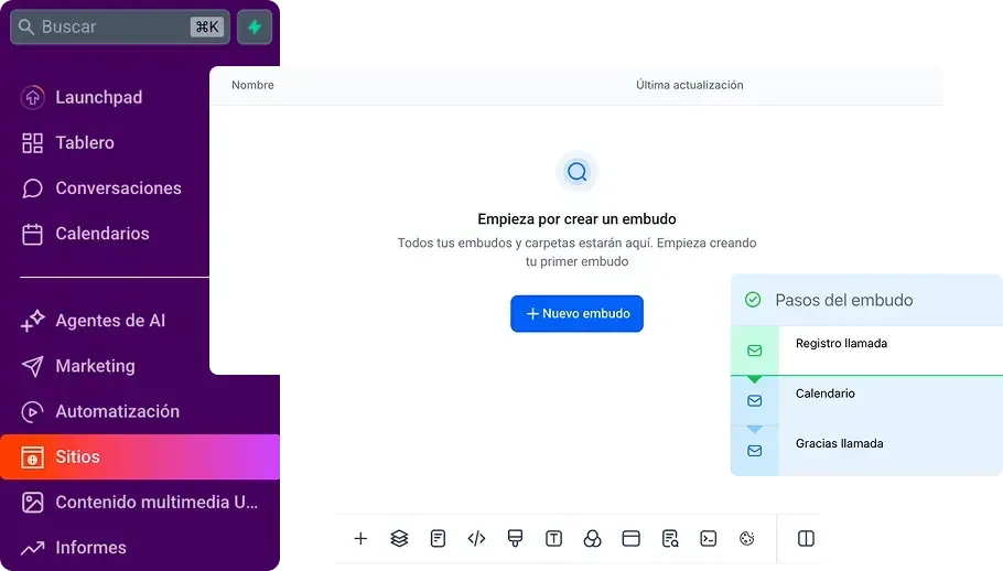 Gestiona el CRM y pipeline personalizado con tus clientes potenciales con objetivo de agendar llamada en el calendario integrado y cobrar a través del mismo sistema.