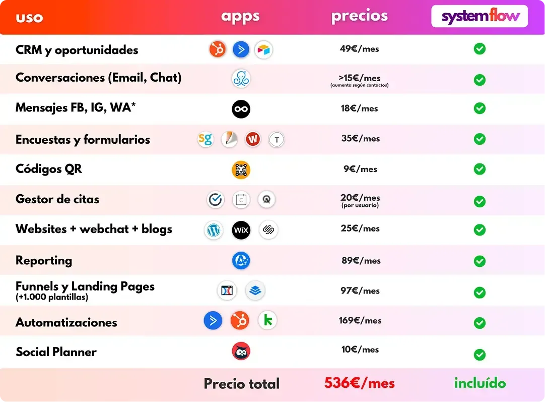 Ahorra más de 500 euros al mes en embudos de venta, herramientas de email marketing, diseño web, automatizaciones y mucho más