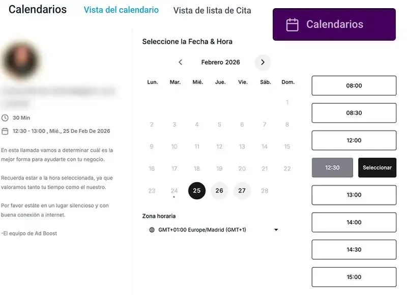 Reserva de citas automática y sincronizada para optimizar tu tiempo.